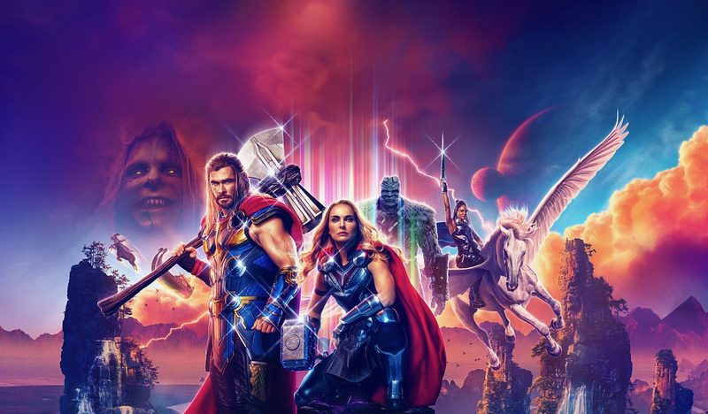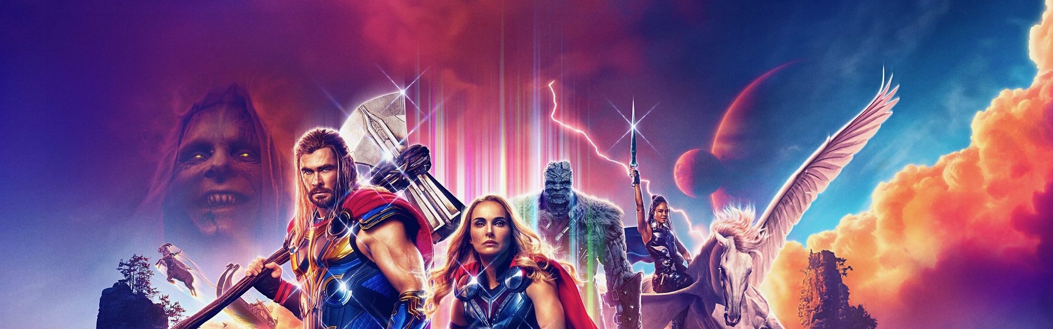 台譯《雷神索爾:愛與雷霆》。 MCU史上首個擁有四部個人電影的超級英雄!《雷神奇俠4: 愛與雷霆》強勢回歸稱霸暑假!承接《復仇者聯盟4:終局之戰》,雷神(基斯咸士禾夫)退隱江湖,追求內心和平,不過寧靜生活卻被揚言要滅絕眾神、號稱屠神者戈爾「Gorr the God Butcher」的銀河殺手(基斯頓比爾)破壞。為對付強大新敵,雷神與女武神(泰莎湯遜)和好友石頭人強岳(泰泰格韋替替)再度集結,更意想不到前女友珍(妮坦莉寶雯)化身「女雷神」,高舉「雷霆戰鎚」加盟助陣,一起展開一段驚心動魄的宇宙歷險,勢要揭開屠神者戈爾(God Butcher)的重大秘密,力阻他的復仇大計⋯⋯