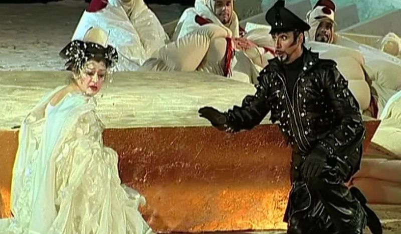 Japan, early twentieth century. U.S. Navy Lieutenant B.F. Pinkerton inspects the house he has leased from a marriage broker. The broker, Goro, has procured him three servants and a geisha wife, Cio-Cio-San, known as Madama Butterfly. He is enchanted with the fragile Cio-Cio-San. Cio-Cio-San is heard in the distance joyously singing of her wedding. In a quiet moment, Cio-Cio-San shows her bridegroom her few earthly treasures and tells him of her intention to embrace his Christian faith. The Imperial Commissioner performs the wedding ceremony, and the guests toast the couple. The celebration is interrupted by Cio-Cio-San's uncle, a Buddhist priest, who bursts in, cursing the girl for having renounced her ancestors' religion. Alone with Cio-Cio-San in the moonlit garden, her husband dries her tears, and she joins him in singing of their love.