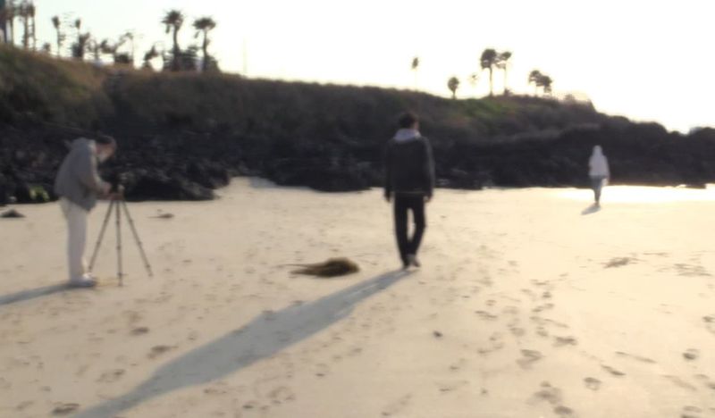 年輕演員打算改執導筒,偕充當女主角與攝影師的兩位好友來到濟洲島海濱,卻苦無靈感。閒遊之際,他瞥見獨自在岩岸清理垃圾的女子,交談間萌生出短片的意念。輕談淺酌、言笑漫步,一貫洪常秀式輕描淡寫、漫不經心。一人包攬整個製作,何妨來一趟電影實驗,索性連鏡頭也不對準,以失焦的朦朧拍出私密之作,那熟識的繆斯面容如霧似花,每格詩意畫面儼如一幅幅印象派油畫。大師視力或許減退,視野可一點也不模糊,四年四度入圍柏林影展,旁人只有羡慕的份兒。