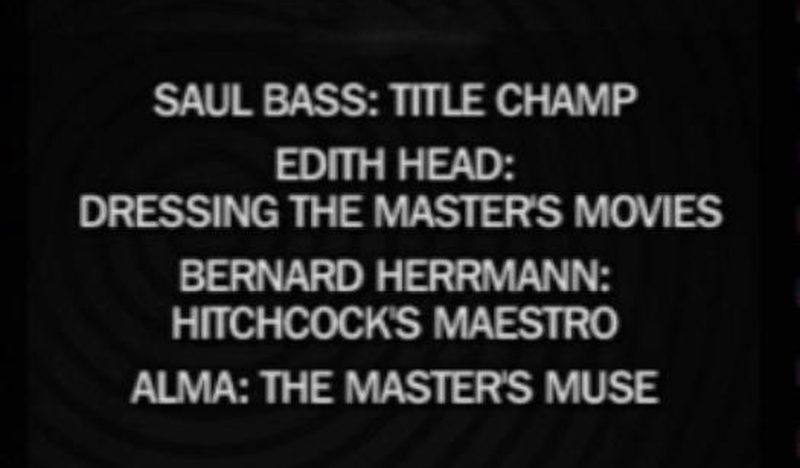 Four featurettes focus on Hitch's collaborations: "Saul Bass: Title Champ" (opening credits), "Edith Head: Dressing the Master's Movies" (costumes), "Bernard Herrmann: Hitchcock's Maestro" (music) and "Alma: The Master's Muse" (Hitchcock's partnership with his wife).