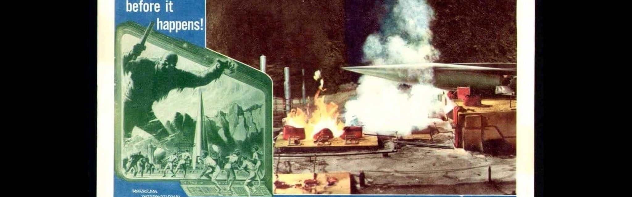 A time travel experiment that was supposed to produce a window into time turns out to be a portal instead. One of the experimenters steps through into a not-too-distant-future world that has been destroyed by nuclear war. Some of the others follow, but then the portal phases out and they can't get back. Things just get worse after that. They run across a rocket that has landed to escape pursuing enemies, bearing scientists who survived the war, and many android "slaves." The time travellers are invited to escape when the ship is again ready to blast off - but just before that happens, the scientits' enemy returns and fires on the sitting-duck ship. A very bad day for the scientists turns terminal at that point, and the 20th-century Earthlings barely escape with their skins.